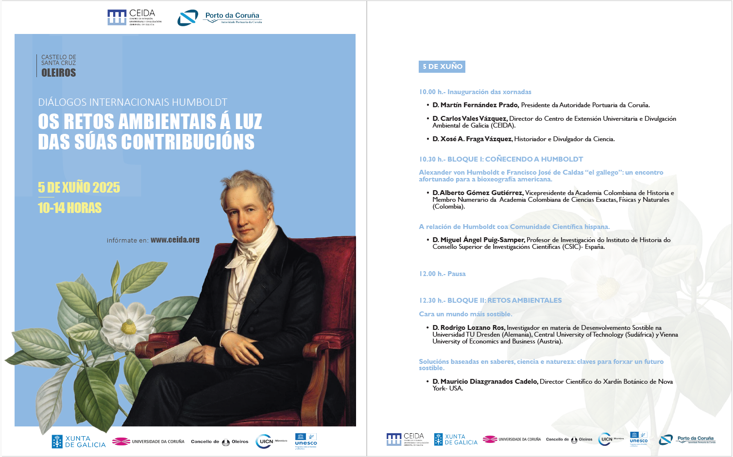 Neste marco insírense os Diálogos Internacionais Humboldt, iniciados en 2023 en colaboración co CEIDA, que teñen como obxectivo dar a coñecer a figura de Alexander von Humboldt (investigador, naturalista e xeólogo, quen protagonizou unha das grandes fazañas científicas da historia cunha expedición americana que partiu da Coruña o 5 de xuño de 1799), así como poñer o foco en temas relevantes e actuais para o medio ambiente.